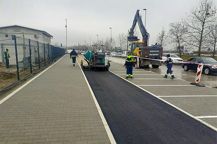 Na lokalitetu istočno od puta M7 i južno od kaćke petlje izgrađena su dva kolska prilaza fabrici dužine 22m (svaki po 11m), pešačka staza u dužini od 545m, i biciklistička od 170m, kao i 62 parking mesta.